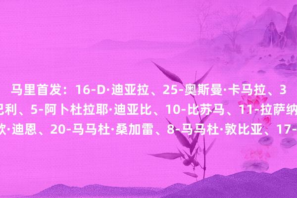 马里首发:16-D·迪亚拉、25-奥斯曼·卡马拉、3-丹特、26-沃约·库利巴利、5-阿卜杜拉耶·迪亚比、10-比苏马、11-拉萨纳·库利巴利、23-阿里欧·迪恩、20-马马杜·桑加雷、8-马马杜·敦比亚、17-西纳约科