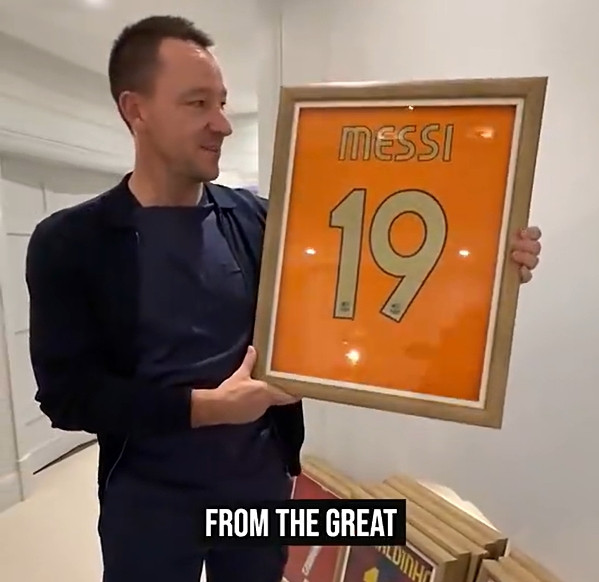 特里在视频中说谈:“这是一件尽头超过的球衣,来自唯一无二的伟大球员梅西在斯坦福桥球场比赛时所穿。