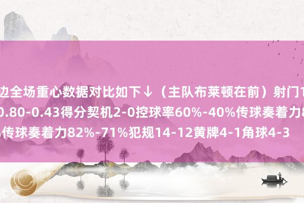 3月5日讯 本轮英超,阿森纳1-0客胜布莱顿。两边全场重心数据对比如下↓(主队布莱顿在前)