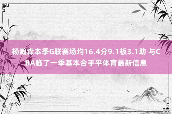 杨瀚森本季G联赛场均16.4分9.1板3.1助 与CBA临了一季基本合手平体育最新信息